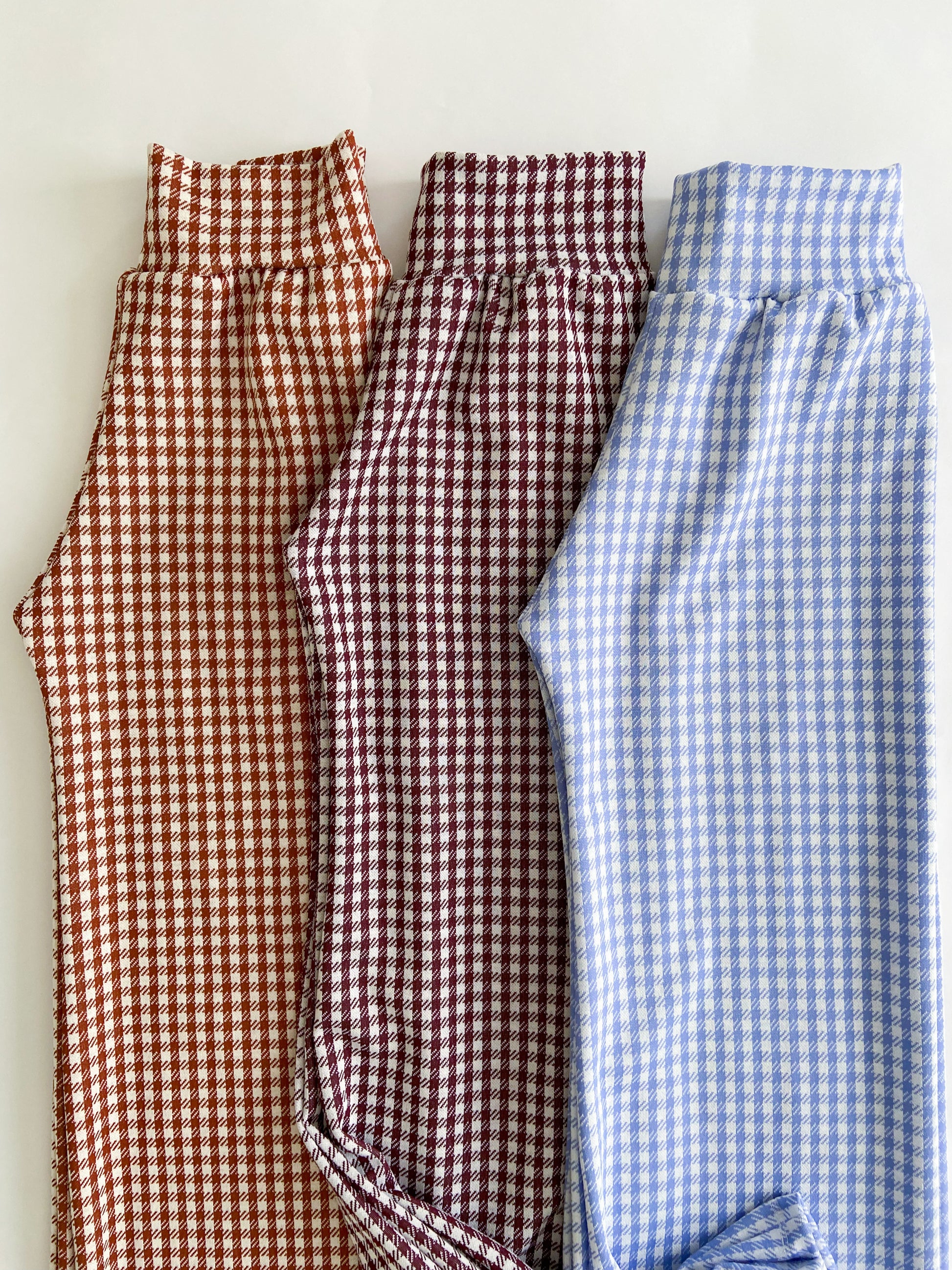 These pants are stylish and on trend not to mention so comfy! The gingham print is so classic and you can’t go wrong with any of these beautiful colors! Made with a soft knit fabric.