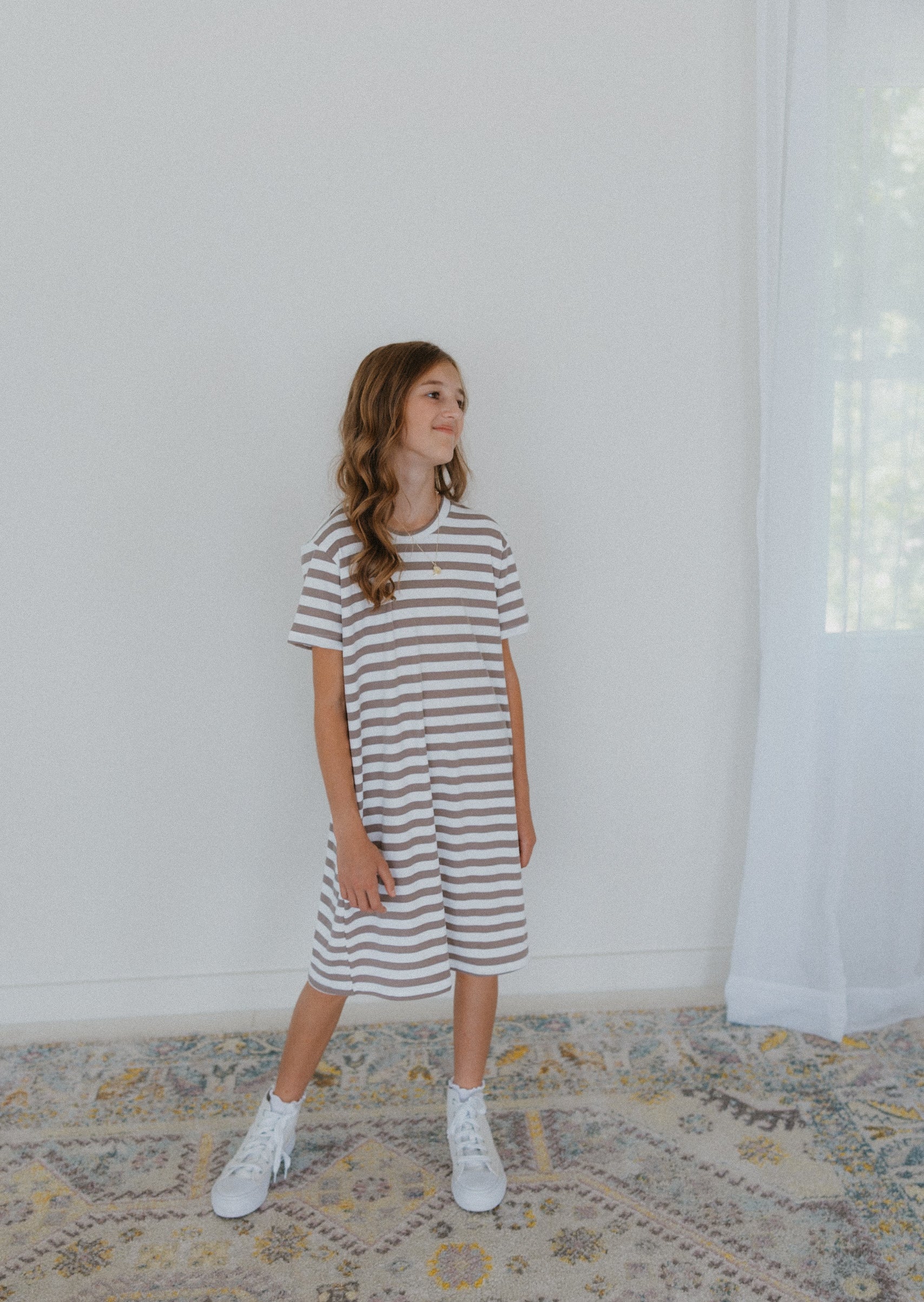 Made with soft rib knit fabric. A classic striped dress in a basic style is a must have in every girls closet!