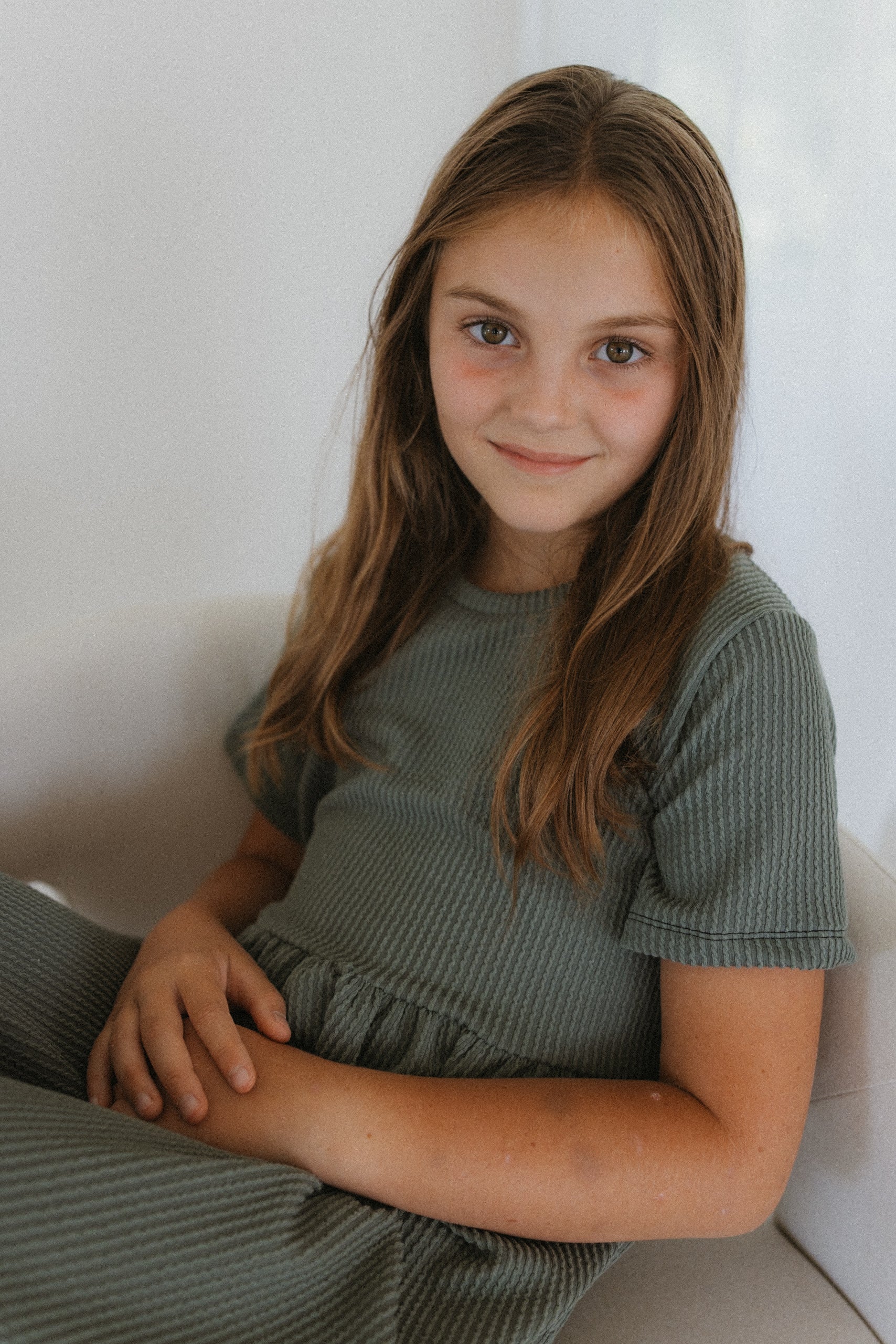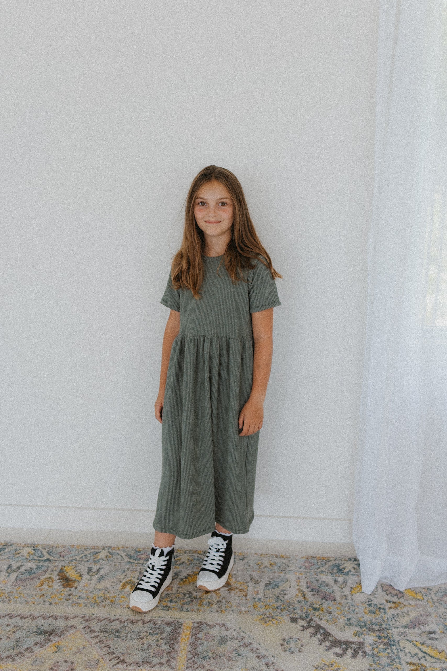 This stunning dress is made with an urban rib knit fabric. So soft and the perfect color for fall! Featuring a midi length and short sleeves. Pair it with one of our pullover sweaters for a cozy outfit for chilly weather.